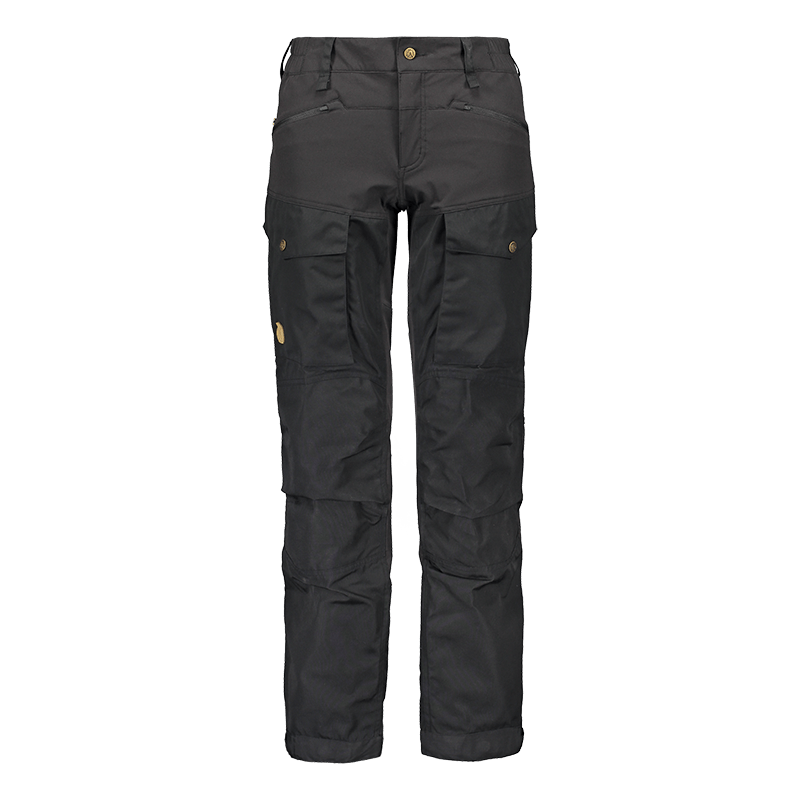 Anar Galda W's Trouser Black allsidige turtights laget av slitesterkt voksmateriale. Buksene passer like godt til aktiv turgåing som til andre utendørsaktiviteter. Elastiske paneler og en gjennomtenkt passform gir fantastisk bevegelsesfrihet. Store ventilasjonsåpninger med glidelås på sidene øker pusteevnen under aktivitet. Glidelåslommer på sidene og store lårlommer for mobiltelefon og andre nødvendigheter. Materialene er egnet for hard bruk.