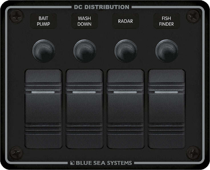 Blue Sea Water Resistant Circuit Breaker Panel 4 Position-Black info: