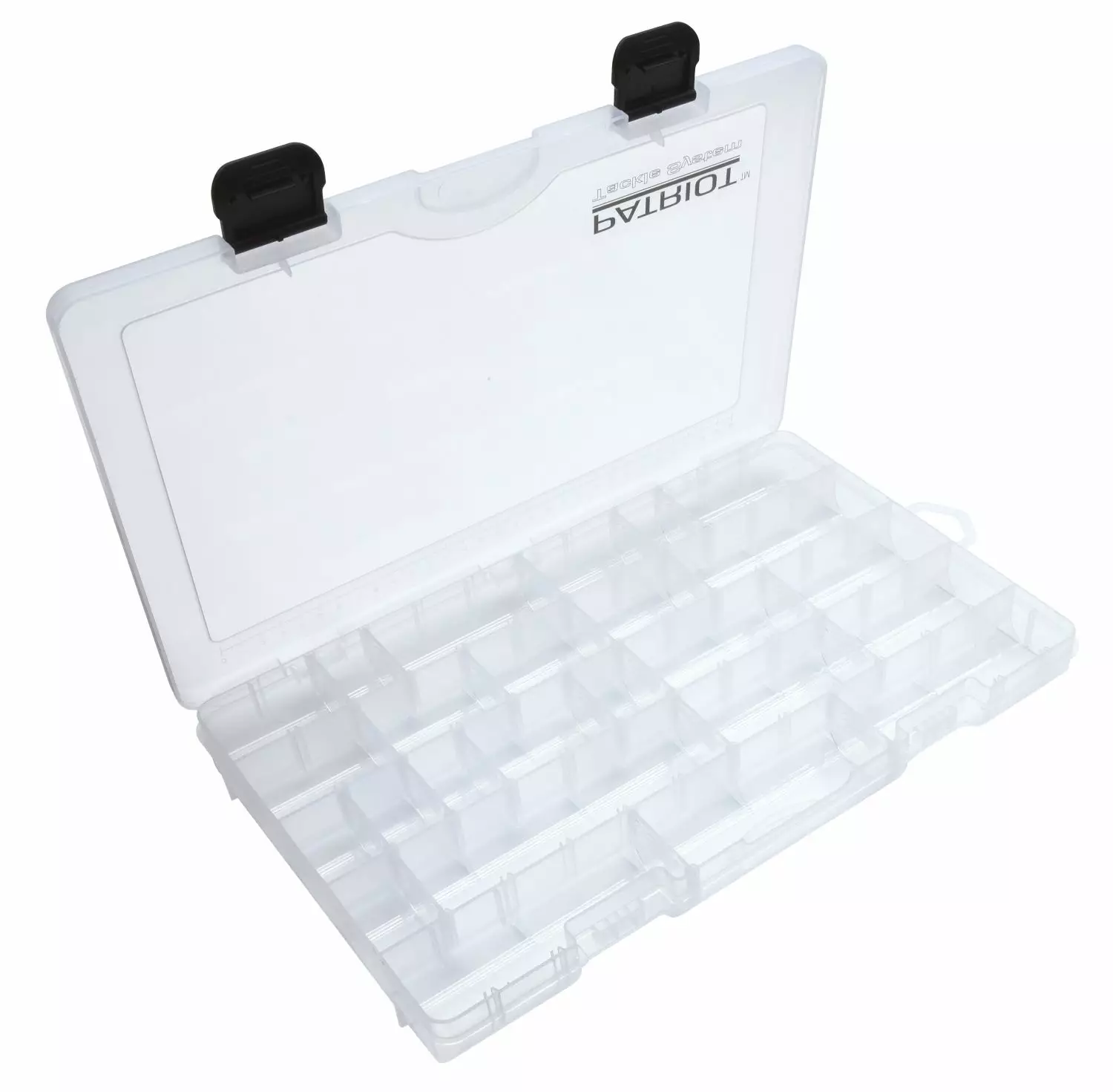 Patriot slukboks #L lav er spesielt designet for jigfiskeres behov, men den er også utmerket for oppbevaring av andre sluker. Dens tilpassbare skillevegger gjør det mulig å organisere innholdet etter dine egne behov.