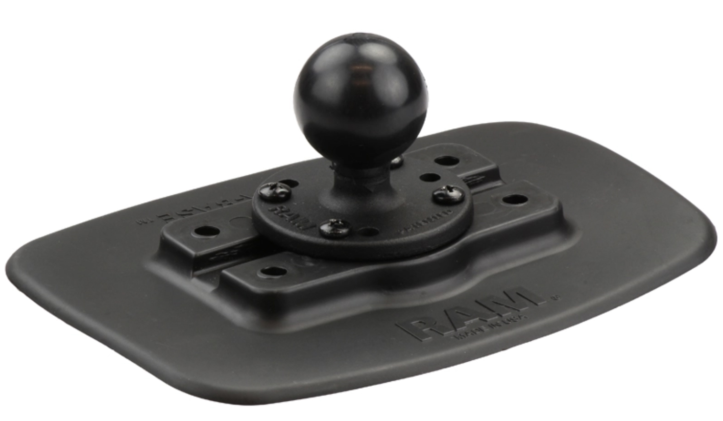 RAM Bond-A-Base Black Adhesive Base with C Ball - er en base med RAM C-kule, for eksempel til kajakk. Takket være den fleksible bunnen kan du enkelt forme den til å passe buede overflater.