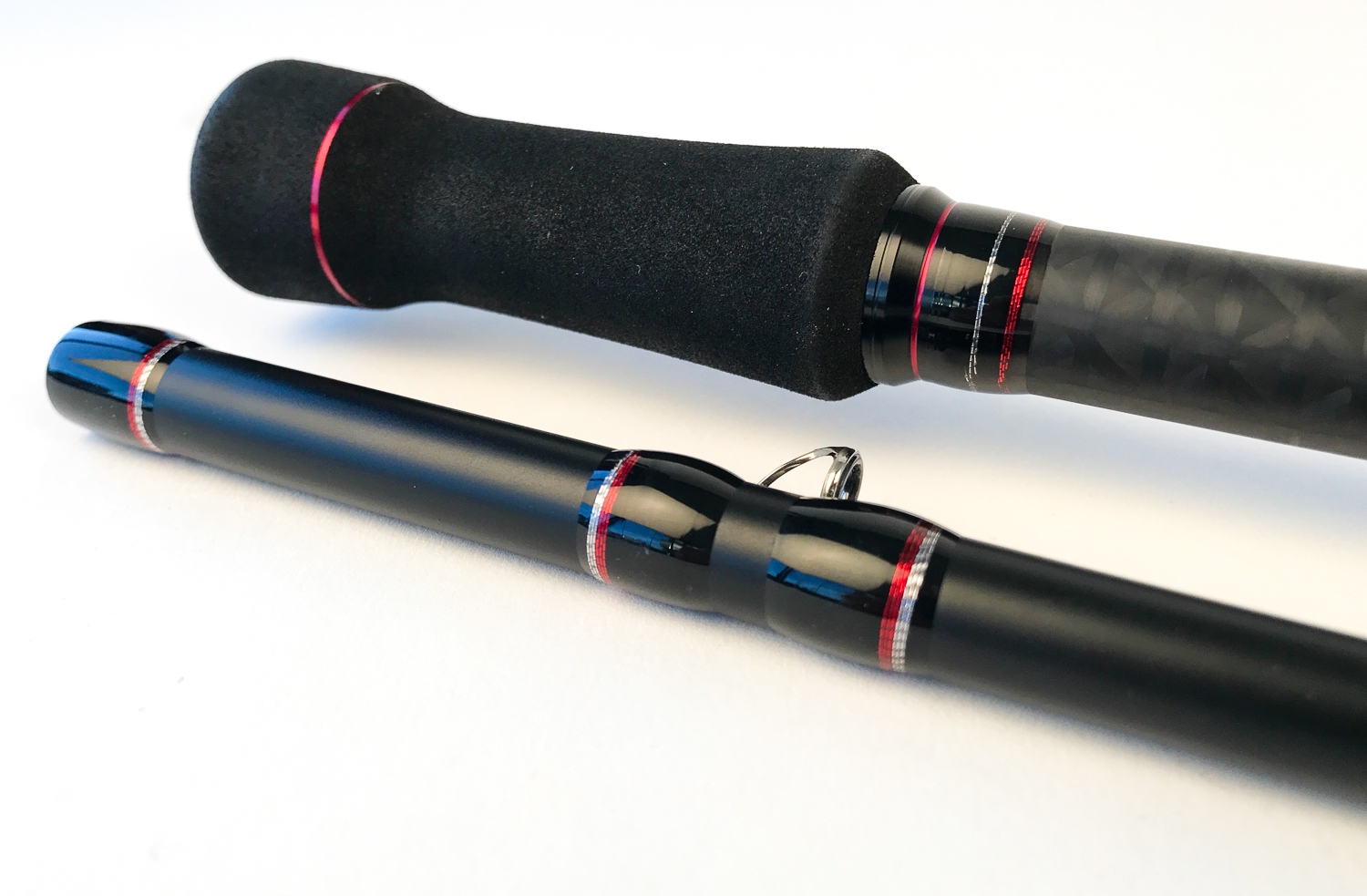 Saxa Shade -stangens hemmelighet er dens gjennomtenkte emne. For å oppnå letthet og rask aksjon er de øverste to tredjedelene av stangen lakkert med et tynt matt lakk. Dermed belaster ikke lakken stangen for mye under kast, og stangens ønskede aksjon bevares. Den nederste tredjedelen er derimot lakkert med en tykkere blank lakk for å beskytte stangen i stangholdere eller når sluker henges på den. I tillegg er den nederste delen av stangen beskyttet og forsterket med et kryssvevd karbonmønster.