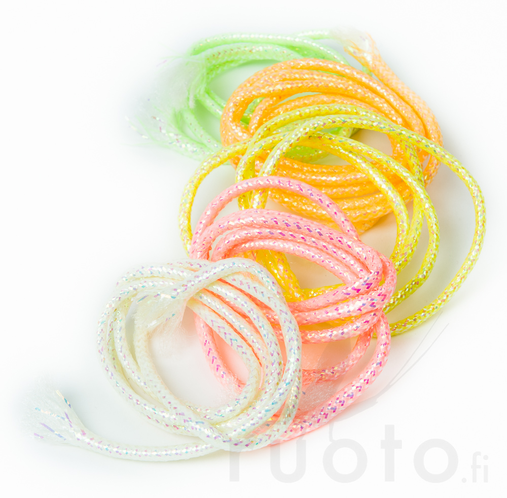 FTS Glo Mylar Tube er et fosforescerende mylar-rør, spesielt designet for fluebinding. Dette fleksible og holdbare materialet er ideelt for å lage kroppene til tubefluer og streamere. Mylar-røret er tilgjengelig i flere forskjellige farger, som gul, rød, hvit, oransje og grønn. Dets fosforescerende egenskap gir fluene en attraktiv glød i mørke forhold, noe som gjør det spesielt nyttig for fiske i skumring eller om natten.