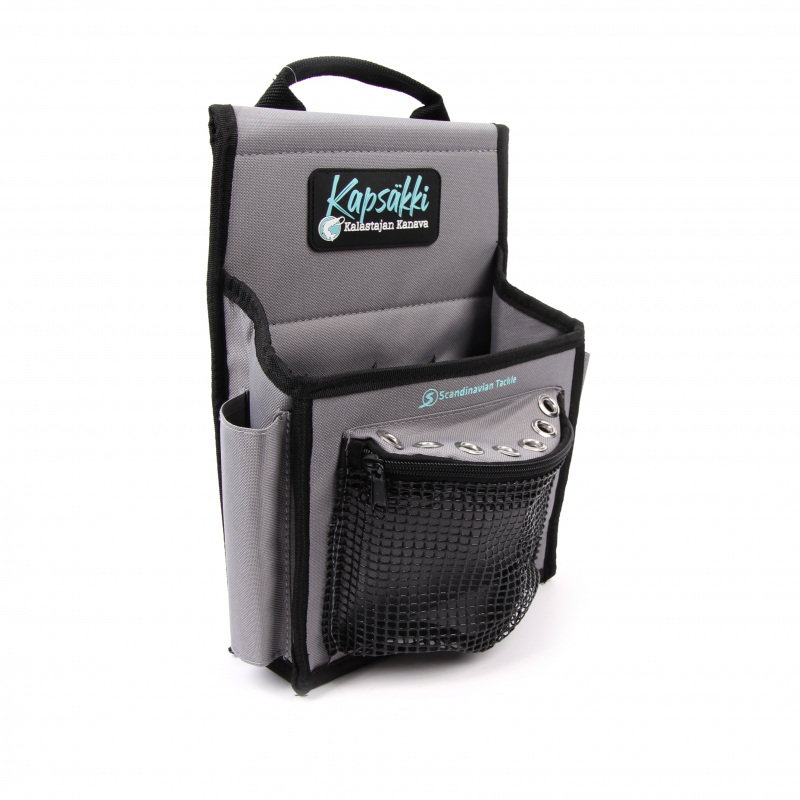 Fiskerens Kanal Kapsäkk - holder fiskerens nødvendige redskaper alltid innen rekkevidde i båten. Kapsäkken er en praktisk utstyrspose for fiskeren. Kapsäkken fungerer utmerket når man fisker fra båt. På baksiden av posen er det en borrelås som gjør det mulig å feste den til båtens rekkverk eller kant. Legg de viktigste verktøyene i posens små lommer, de større i hovedrommet og de spesielle i nettlommen. Når du er ferdig med å fiske, kan posen enkelt tas med takket være den praktiske borrelåsfestingen. Materialer: 1000D og 600D polyester. Ringer i rustfritt stål.