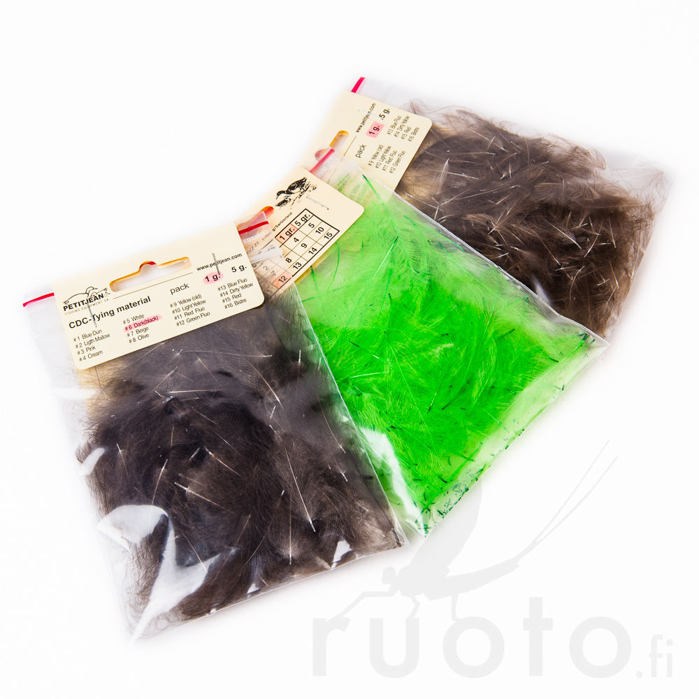 Marc Petitjean CDC -fjær er fjær av topp kvalitet og nøye utvalgt, spesielt designet for fluebinding. CDC-fjær (Cul de Canard) kommer fra bunnen av andens fettkjertel, noe som gir dem naturlig vannavstøtende egenskaper. Denne egenskapen gjør dem til et svært populært materiale for tørrfluer og moderne nymfer.