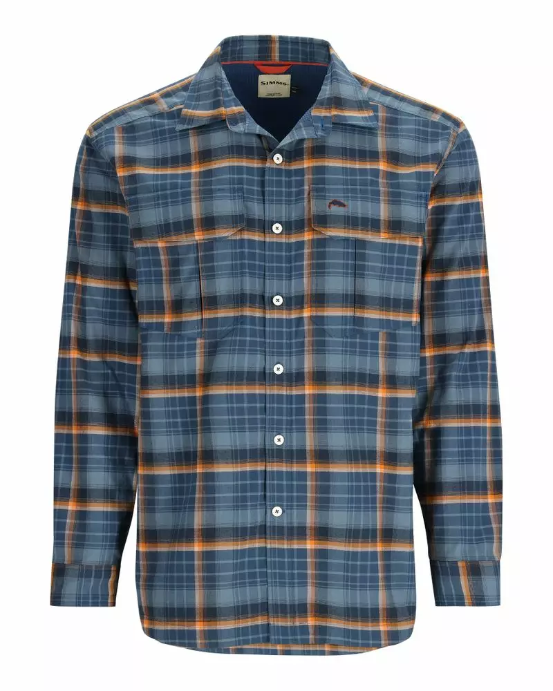 Simms ColdWeather Shirt Neptune/Sun Glow Ombre Plaid flanellskjorte med fleecefôr gir varme og komfort for vinterfiske. Skjorten er designet for å være slitesterk og holde deg varm selv under kalde forhold.