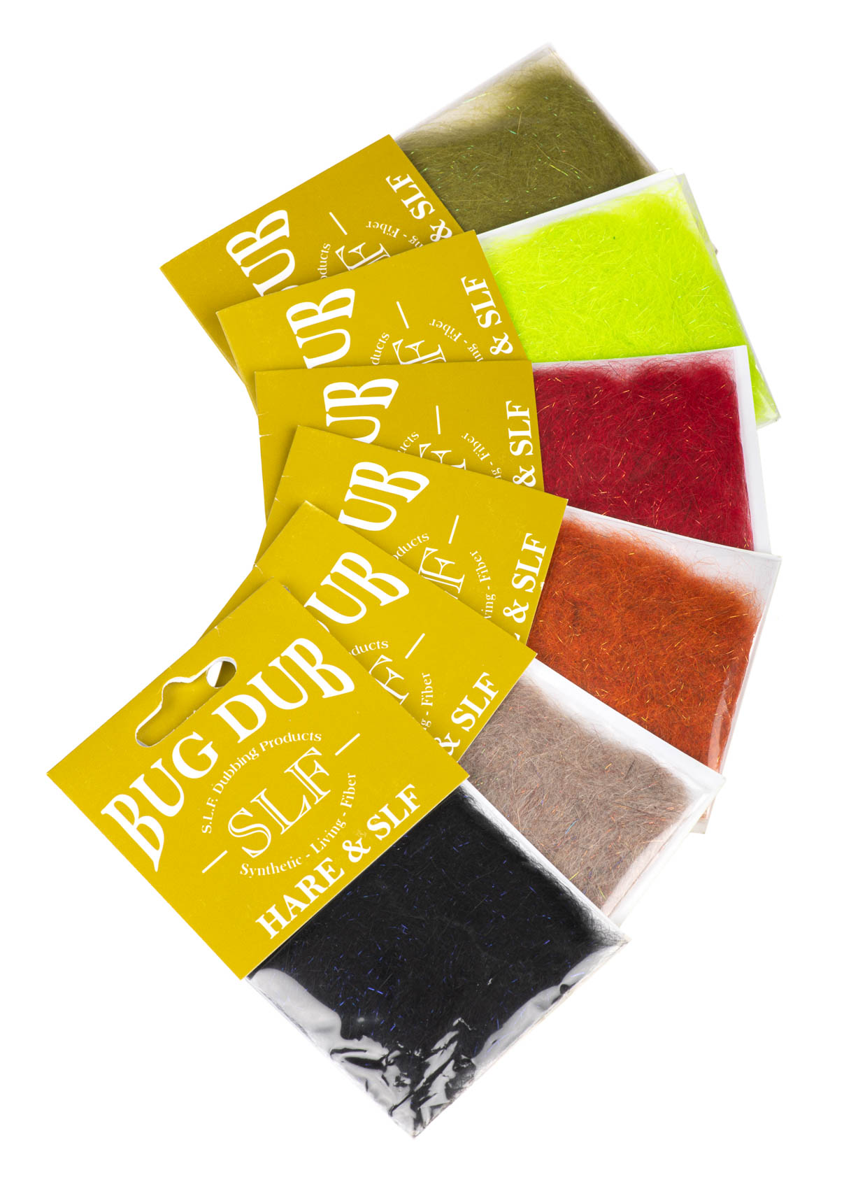 SLF Bug Dub Dubbing er en dubbing laget av harekroppshår og SLF Prism glitterdubbing. SLF Bug Dub passer til mange forskjellige insektimitasjoner samt til å dubbe kropper på laksefluer, og det er veldig enkelt å dubbe på tråden takket være dens mykhet.