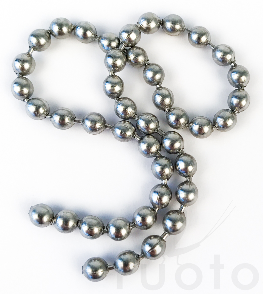 Hareline Stainless Steel Bead Chain Eyes - kulekjedesyn er spesielt designet for saltvannsfluer, da de er laget av rustfritt stål. Selv saltvann vil ikke umiddelbart forårsake rust på disse øynene, slik det ofte skjer med vanlige kulekjedesyn, men de tåler bruk i flere år.