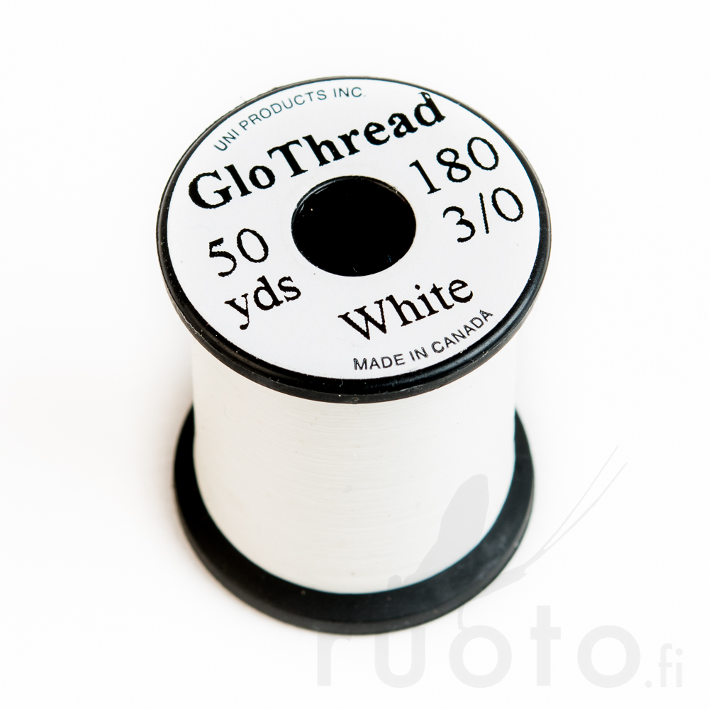 UNI-GloThread 3/0 er en fosforescerende fluebindertråd som lyser i mørket. Tråden er laget med fosforpigmenter, og den kan lades opp med lys, som for eksempel kamerablits eller lommelykt. Etter opplading lyser tråden i mørket i noen timer.