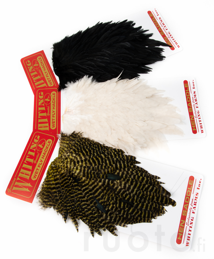 Whiting Wet Fly Hen Saddle er en hønesadel som er spesielt designet for fluebinding. Dette produktet inneholder myke og livlige fjær som er allsidige og spesielt egnet for å lage våtfluer. Større fjær kan også brukes som halsfjær på laksefluer. Sadelen måler omtrent 25 x 14 cm, og fjærene varierer i lengde fra 4 til 10 cm. Fiberlengden er 8 til 15 cm. Dette gjør den til et utmerket valg for fluebindere som ønsker å lage realistiske og effektive fluer.