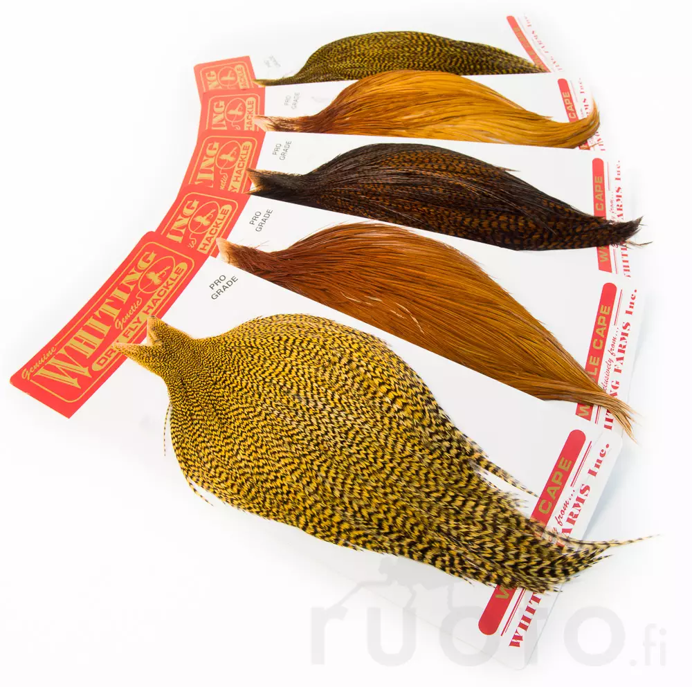 Whiting Dry Fly Cape Bronze Grade hanenakker er førsteklasses tørrflue nakker med fjær som har en fleksibel og holdbar stilk. Fjærene har god vannavstøtning, slik at flere falske kast ikke er nødvendig, og fluen tørker raskt. Bronze grade nakken har fjær for fluer i størrelse 10-16.