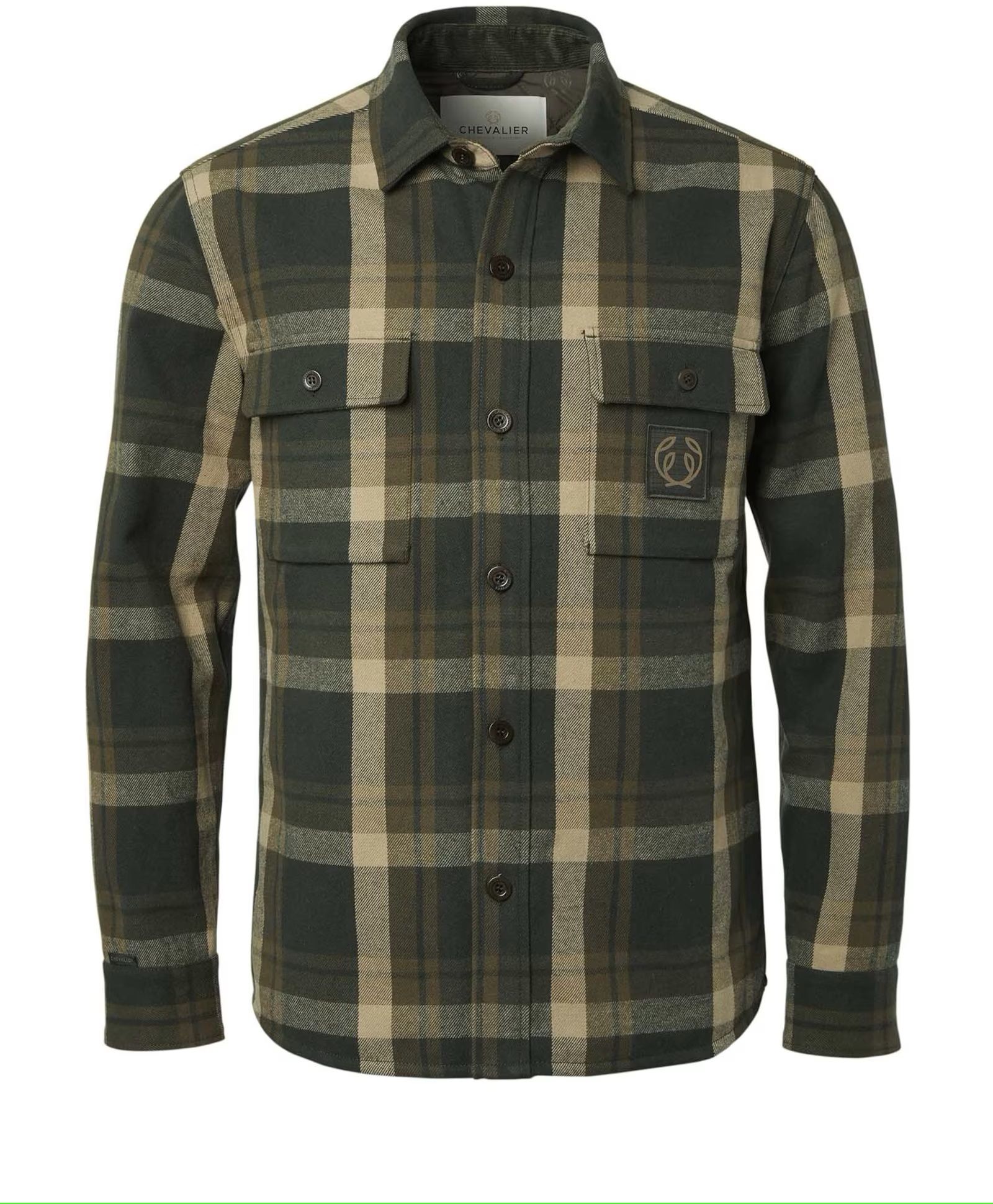Chevalier Axe Overshirt Men er laget av fast, lett børstet bomull. Fôret er et tynt og høykvalitets vattert stoff. Axe-skjortejakken har Chevalier-logo-knapper foran og et logomerke på venstre brystlomme. Brystlommene har en fold nederst og en knappelukket klaff. Kragen er foret med mykt manchesterstoff. Skjortejakken kan brukes som en skjorte eller som en lett jakke.