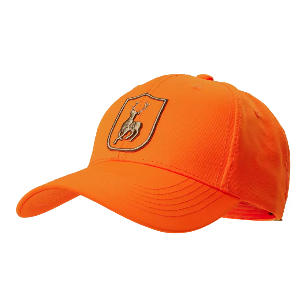 Deerhunter Shield Cap Orange jegerens caps, laget av 100 % polyester. Den er justerbar og tilgjengelig i en synlig signalfarge, oransje. Capsen har Deerhunter-logoen og er designet for å være et praktisk og stilig valg for jaktforhold der synlighet er viktig.