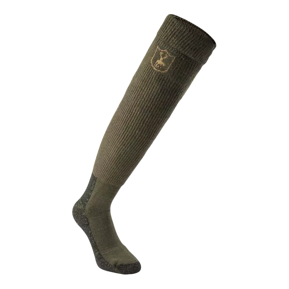 Deerhunter Wool Socks Deluxe Long Grape Leaf lang ullblandingssokk, spesielt designet for jaktbruk. Sokkerne er laget av 40 % akryl, 40 % ull og 20 % polyamid.