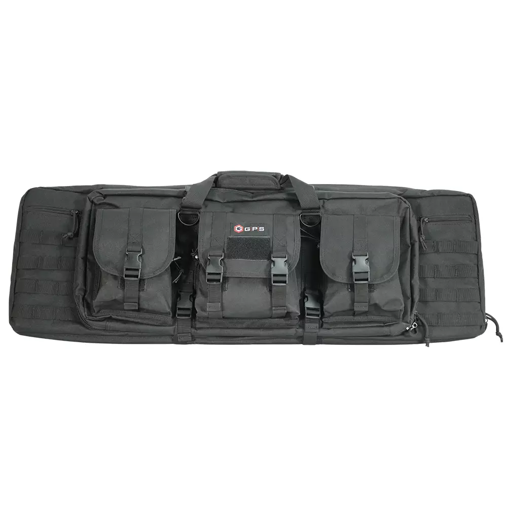 GPS 36" Double Rifle Case Black er en 36-tommers svart våpenveske som er spesielt designet for å transportere to rifler. Hovedrommet har polstrede plasser for to rifler med borrelåsstropper og en fullengdes polstret skillevegg som beskytter våpnene under transport.