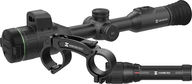 Kjernen i pakken er HIKMICRO Alpex A50EL 4K Tube Scope LRF, som har en 3840 x 2160 piksel CMOS-bildesensor, en lyssterk 50 mm linse med justerbar blenderåpning (F1.2 - F2.5) og en 0,49-tommers OLED-skjerm med 1920 x 1080 oppløsning. Den innebygde laseravstandsmåleren med rekkevidde opptil 1000 meter og ballistisk beregning hjelper med å justere siktepunktet i henhold til kulefall, noe som forbedrer treffsikkerheten på ulike skyteavstander. Siktet har flere retikkel- og fargealternativer, slik at det kan tilpasses til våpen- og ammunisjonskombinasjonen.