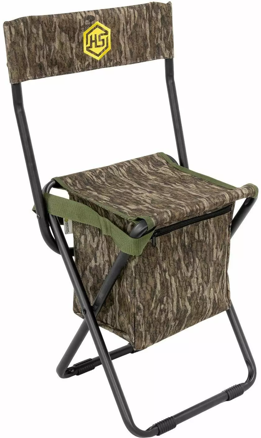 HS Dove Chair Backrest Bottomland er en jaktstol som er spesielt designet for jakt og friluftsliv. Stolen er laget av slitesterkt stål, noe som sikrer dens lang levetid og pålitelighet. Den lette og sammenleggbare konstruksjonen gjør den enkel å transportere, og den medfølgende bærereimen øker brukervennligheten. Stolen har et tilpasset Mossy Oak Bottomland polyester sete og ryggstøtte, samt en oppbevaringspose under setet som gir en praktisk plass for oppbevaring av utstyr.