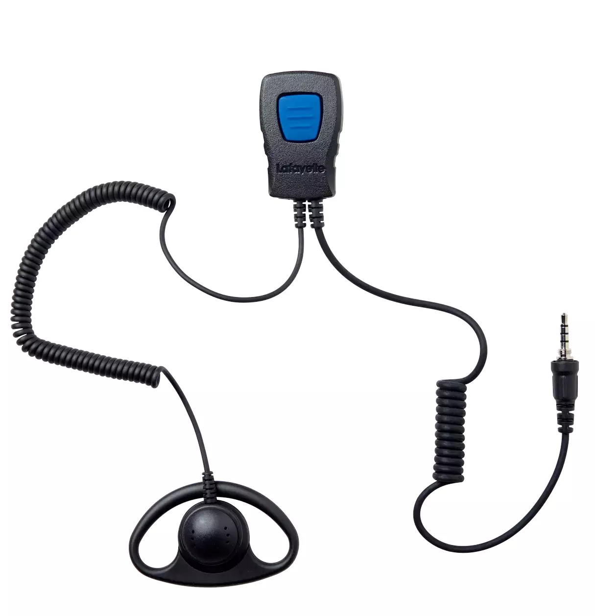 Lafayette Headset Hodesett Smart/Smart+ er utstyrt med en stor sendeknapp, mikrofon og metallklips. Hodesettet har en ekstern øretelefon som plasseres over øret og gir lyd av høy kvalitet.