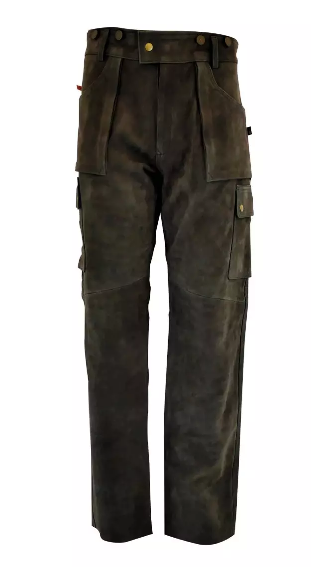 Bukserne har omhyggeligt designede detaljer, der gør dem praktiske og funktionelle til jagt og udendørsaktiviteter. Det anvendte læder er valgt for dets holdbarhed og kvalitet.