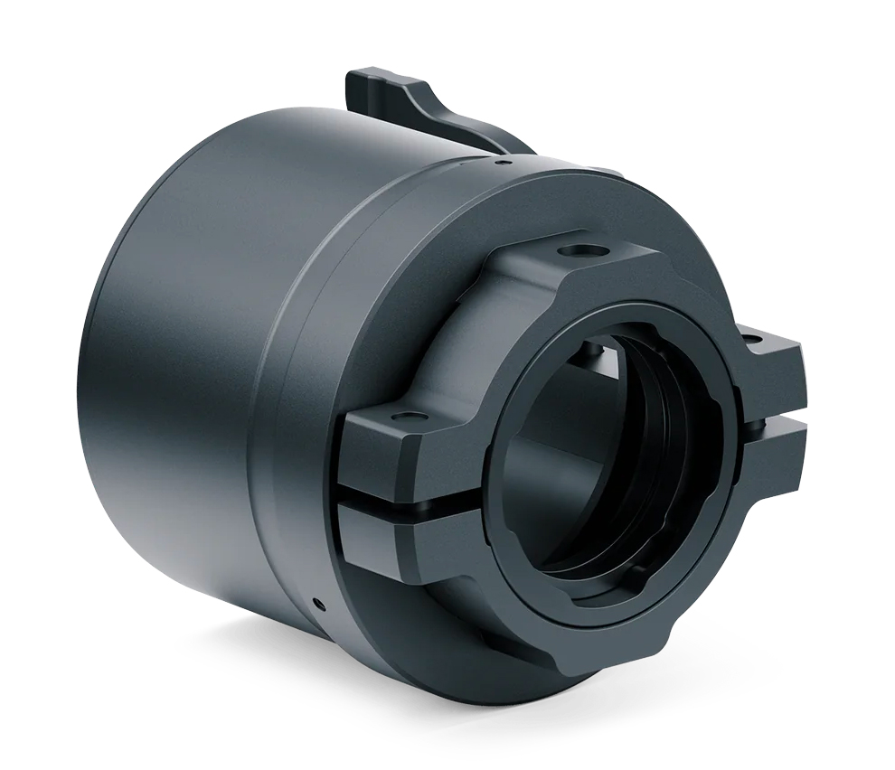 Den termiske tilleggsmodulen festes til adapteren med en firepunkts bajonettkobling. Bajonettkoblingen er svært pålitelig, rask og enkel å feste. Festet kan fjernes fra adapteren og monteres på en annen uten spesialverktøy, slik at du raskt og enkelt kan konvertere dagoptikken i jegerens arsenal til termisk optikk.