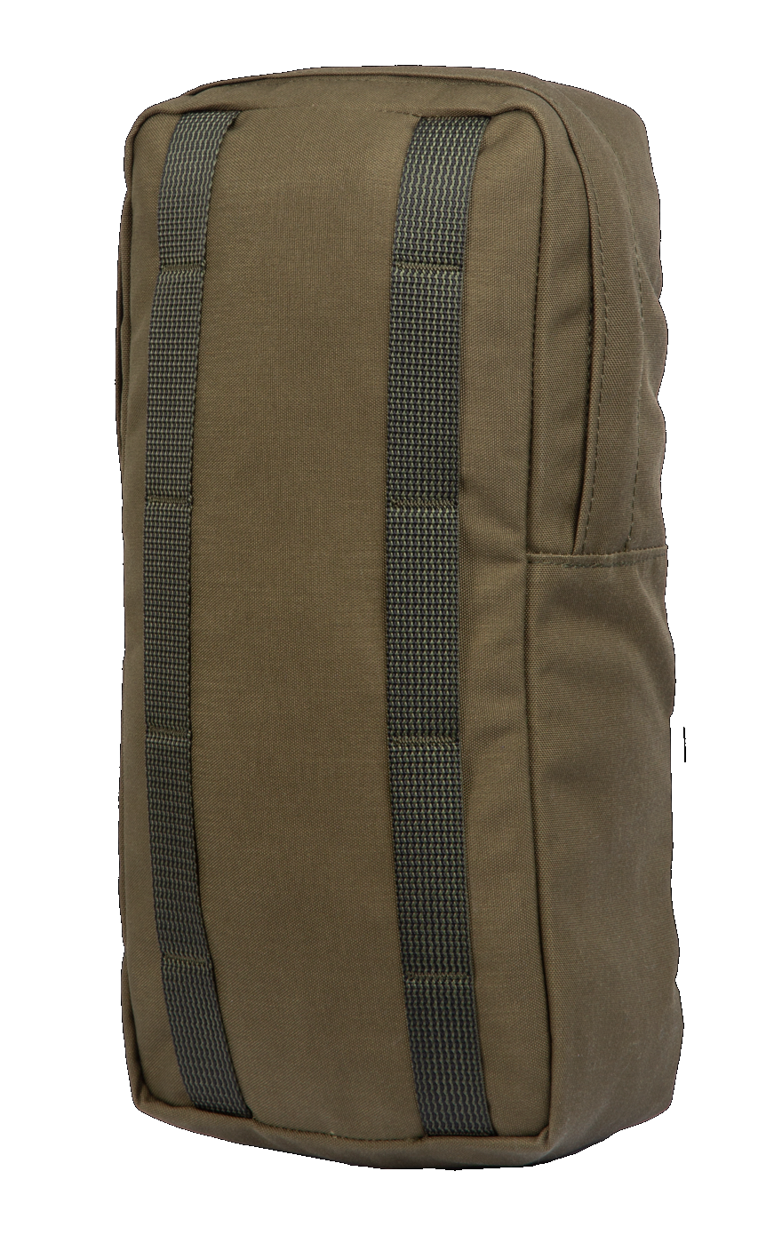 Baksiden har våre vanlige PALS-fester med brettede ender. De midterste horisontale båndene er utelatt, da de ikke tilbød annet enn ekstra vekt. Selv om vi ikke er en produsent av ultralette utstyr, liker vi ikke unødvendig vekt. Mellom de to vertikale PALS-festebåndene på lommen er det ca. 9 cm avstand, noe som gjør det mulig å bære økser, stenger osv. bak lommen. Optimal festing krever en PALS-matrise som er fire kanaler bred og seks (minst fem) rader høy. Ryggsekkens sidekompresjonsstropper forhindrer at lommen og innholdet beveger seg når de er strammet. 6L sidelommen passer til alle ryggsekker i Jääkäri-serien. På ryggsekker med mindre enn seks rader med PALS-matrise på sidene kan lommens bunn "henge". Du kan la sidekompresjonsstroppen håndtere dette, eller du kan feste lommen et trinn høyere.