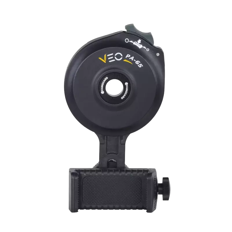 Vanguard VEO PA-65 er en universell digiscoping-adapter som passer til okularene på spottingscopes, kikkerter og monokularer med en diameter på 34–54 mm. Adapteren kan festes direkte til et stativ eller en monopod med en 1/4"-20 gjenge. I tillegg kan okularet justeres for nøyaktig linsejustering.