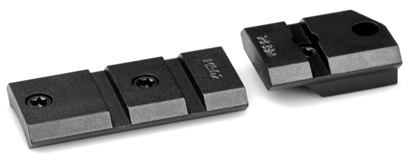 Adapteren festes med skruer til våpenets låskasse og er kompatibel med både Picatinny- og Weaver-skinner. Den robuste stålkonstruksjonen sikrer pålitelig montering og lang levetid.