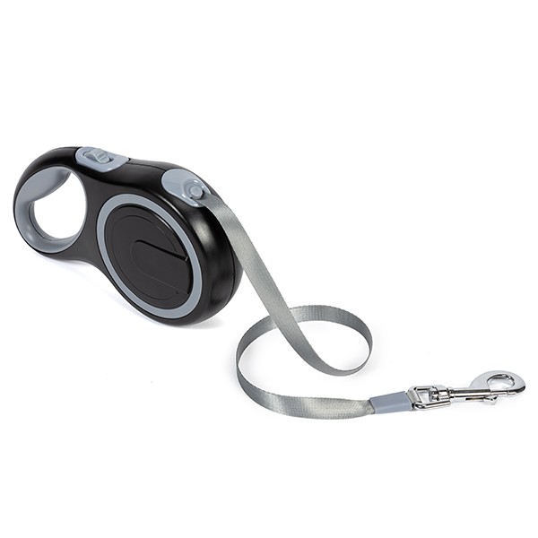 Hundra Uttrekkbar Bånd for hunder som veier opptil 30 kg. Dette uttrekkbare båndet har et 5 meter langt bredt bånd, utstyrt med en slitesterk utløserlås. Låsing og frigjøring av båndet kan enkelt gjøres med tommelen, og det ergonomiske håndtaket gir et godt grep for eieren.