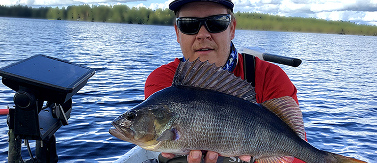 Ruotos Janne og Jani fikk endelig en fridag samtidig og benyttet anledningen til å fiske sammen. Temaet for dagen var å få abbor over 40 cm ved hjelp av liveekkolodd og krepsjigger.