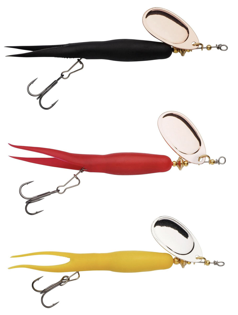 Abu Garcia Salmo Seeker 3-pack - Salmon Seeker er spesifikt designet for laksefiske i elver. Veldig enkel å fiske med og med et attraktivt skjørt, er Salmon Seeker tilgjengelig i de mest populære fargene for laksefiske. Serien består av både en oppstrøms- og en nedstrømsmodell, for å dekke enhver mulig situasjon. Men det som virkelig skiller denne sluken ut er muligheten til å raskt og enkelt bytte krok!