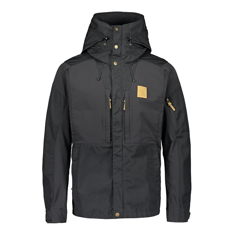 Anar Muorra M's Jacket er en svært pustende friluftsjakke laget av slitesterkt voksmateriale. Jakken passer både til aktiv vandring og andre utendørsaktiviteter. Designet fokuserer spesielt på utseende og funksjonalitet, og materialene er valgt med holdbarhet i tankene. Når du er aktiv, kan du åpne jakkens glidelåslufting for ekstra ventilasjon. Den treveis justerbare hetten beskytter mot vind og vær. Jakkens materiale tåler hard bruk og gir en justerbar beskyttelse mot vind og fuktighet ved hjelp av voks. Elastisk materiale er plassert under armene og på ryggen for å sikre fri bevegelse og økt pusteevne.