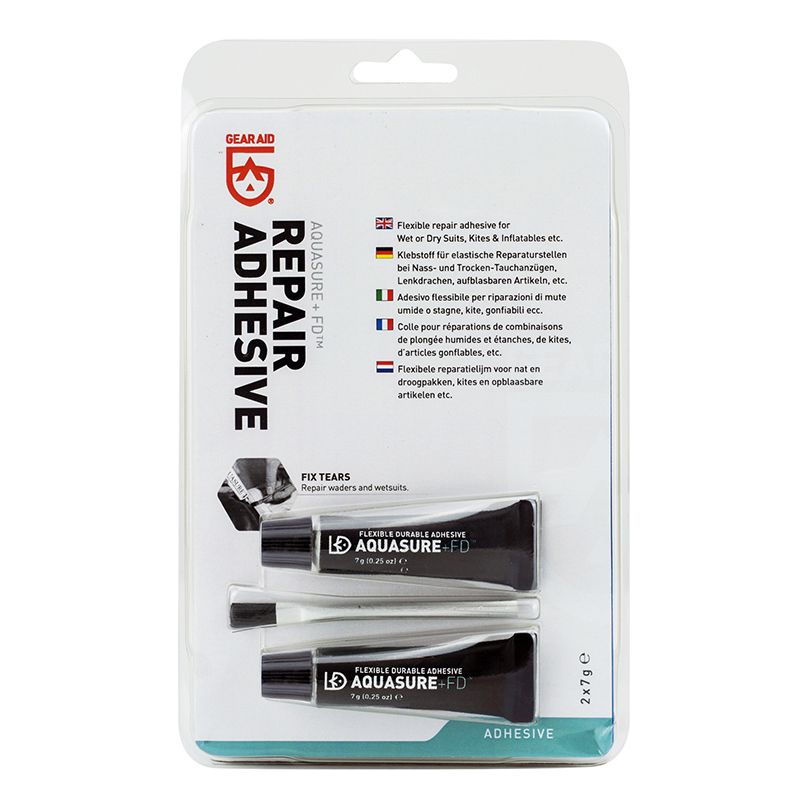 GearAid Aquasure +FD er verdens mest populære reparasjonslim som du kan bruke til mange forskjellige formål. Tørker elastisk og forårsaker ikke stivhet i stoffet, derfor er det veldig populært for eksempel til reparasjon av vadere. Aquasure reparasjonslim som er egnet for reparasjon av for eksempel våtdrakter, vadere eller gummibåter. Klar, vanntett uretanreparasjonslim fester seg permanent til overflater og tørker klart. Etter herding er Aquasure et fleksibelt og elastisk gummilim som er ideelt for reparasjon av utendørsutstyr som er i konstant bevegelse. Det gir også utmerket slitestyrke. Svært allsidig – Fester seg til alle typer vanntette utendørsstoffer, for eksempel neopren, gummi, nylon, stoff og vinyl. GearAid Aquasure +FD er et utmerket reparasjonslim for applikasjoner som krever et vanntett resultat.