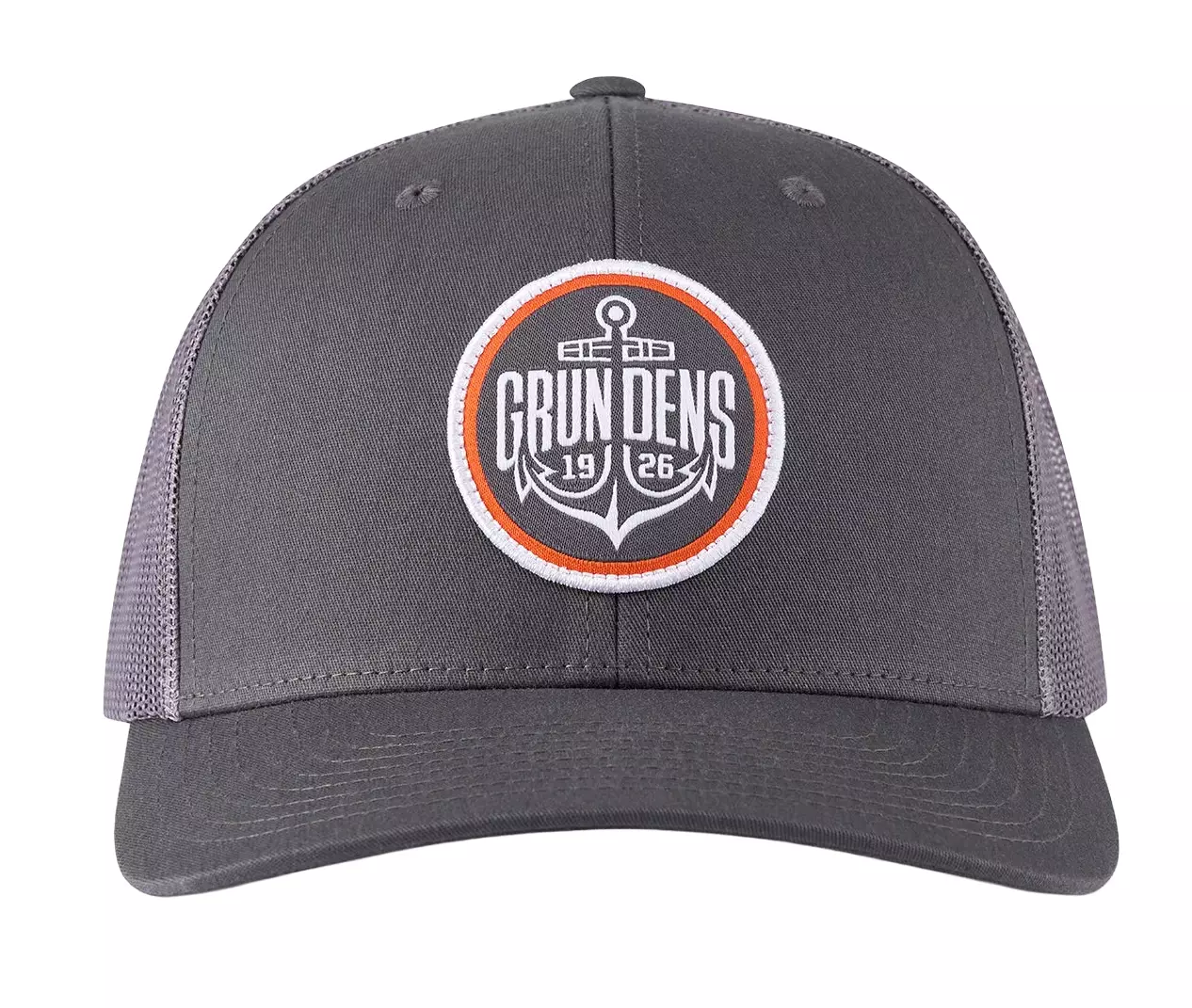 Grundéns Logo Anchor Trucker Charcoal en stilig og praktisk caps som er designet for å være slitesterk og komfortabel. Den har Grundéns 1926 ankerlogo som gir en maritim stil.