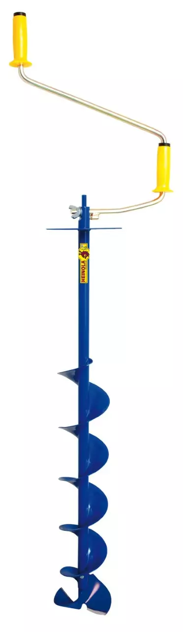 Adapteren har også vanlig håndsveivfeste. I tillegg en fast sikkerhetsskive som forhindrer isboret fra å falle i vannet hvis det løsner fra borremaskinen under bruk.