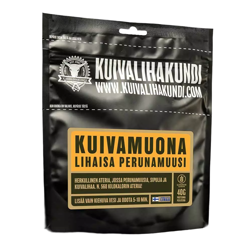 Kuivalihakundi Tørrmat Kjøttfull Potetmos 135g er det perfekte valget for den kresne smaken. Denne ferdigretten er spesielt designet for friluftsliv og turer, og gir rikelig med protein og energi. Mosen inneholder omtrent 40g protein og 568 kcal energi per porsjon, noe som gjør den til en utmerket energikilde for langvarige aktiviteter.