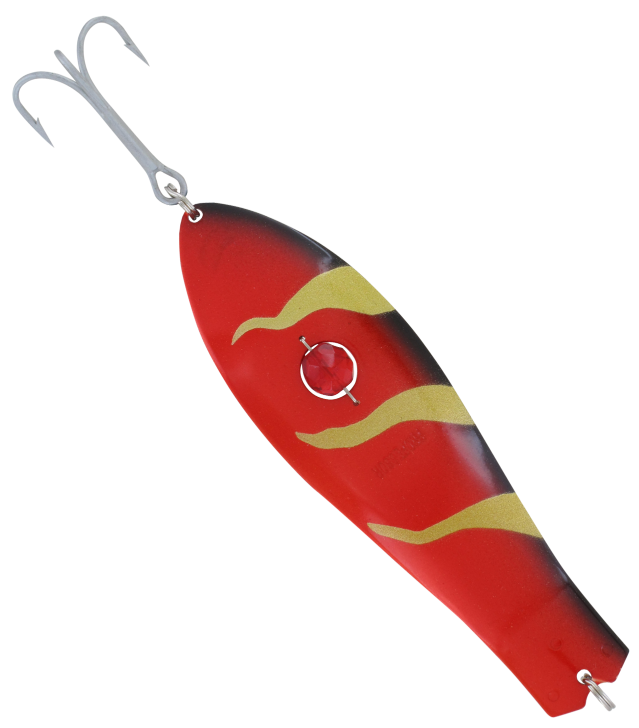 Kuusamo Professor Helmi Tung - Store skjeer er perfekte for fiske etter stor gjedde. Av en eller annen grunn foretrekker gjedder tidlig på våren og sent på høsten store byttefisker. Vanligvis er de enten store morter eller brasmer. Rovdyrets blikk søker seg til en fisk som har kommet bort fra stimen. Gjedden begynner å følge den og slår til på et passende øyeblikk. Ta med denne Proffen på dine stor-gjedde-fisketurer. Husk at du kan feste denne sluken til snøret fra begge ender.