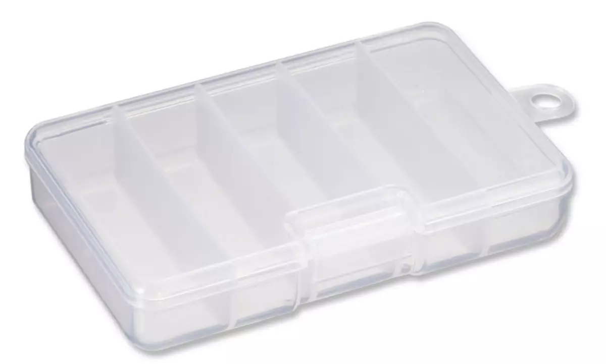 Meiho Mini Hunter er en kvalitetsboks i lommestørrelse for kroker, små wobblere, jigger osv. Fem rom. Gjennomsiktig plast gjør det enkelt å se innholdet.