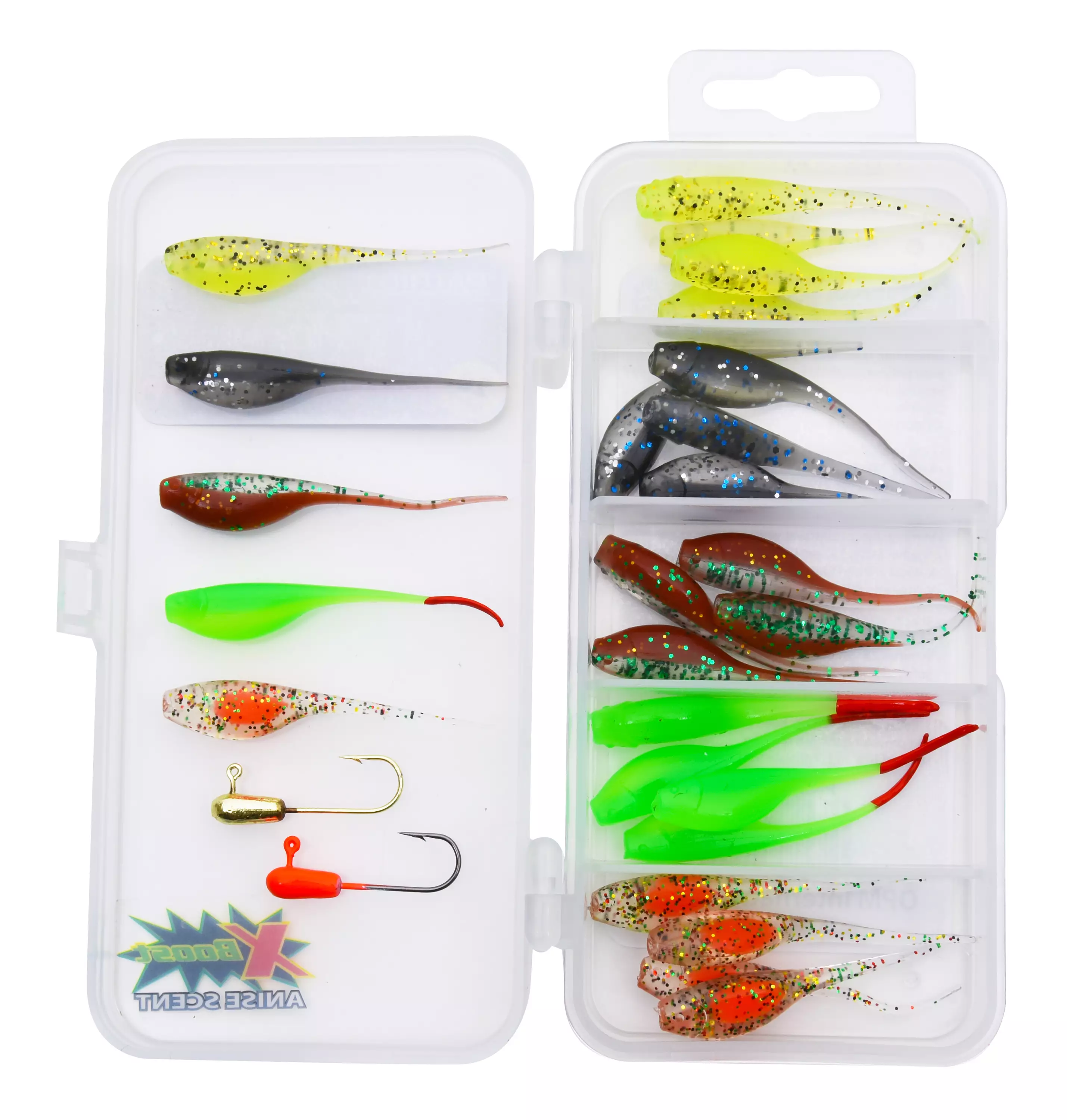 - Jiggene er tilsatt X-Boost anisduftende duftstoff som provoserer fisk til å bite