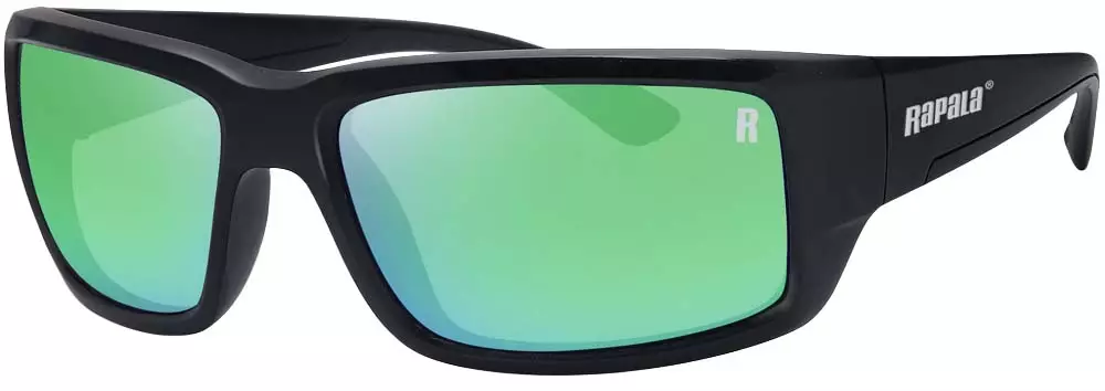 Rapala Amberjack Matte Black Green Mirro – polariserte solbriller designet spesielt for fiske og friluftsliv. Med disse brillene kan du se under vannoverflaten og redusere blending i sterkt sollys.