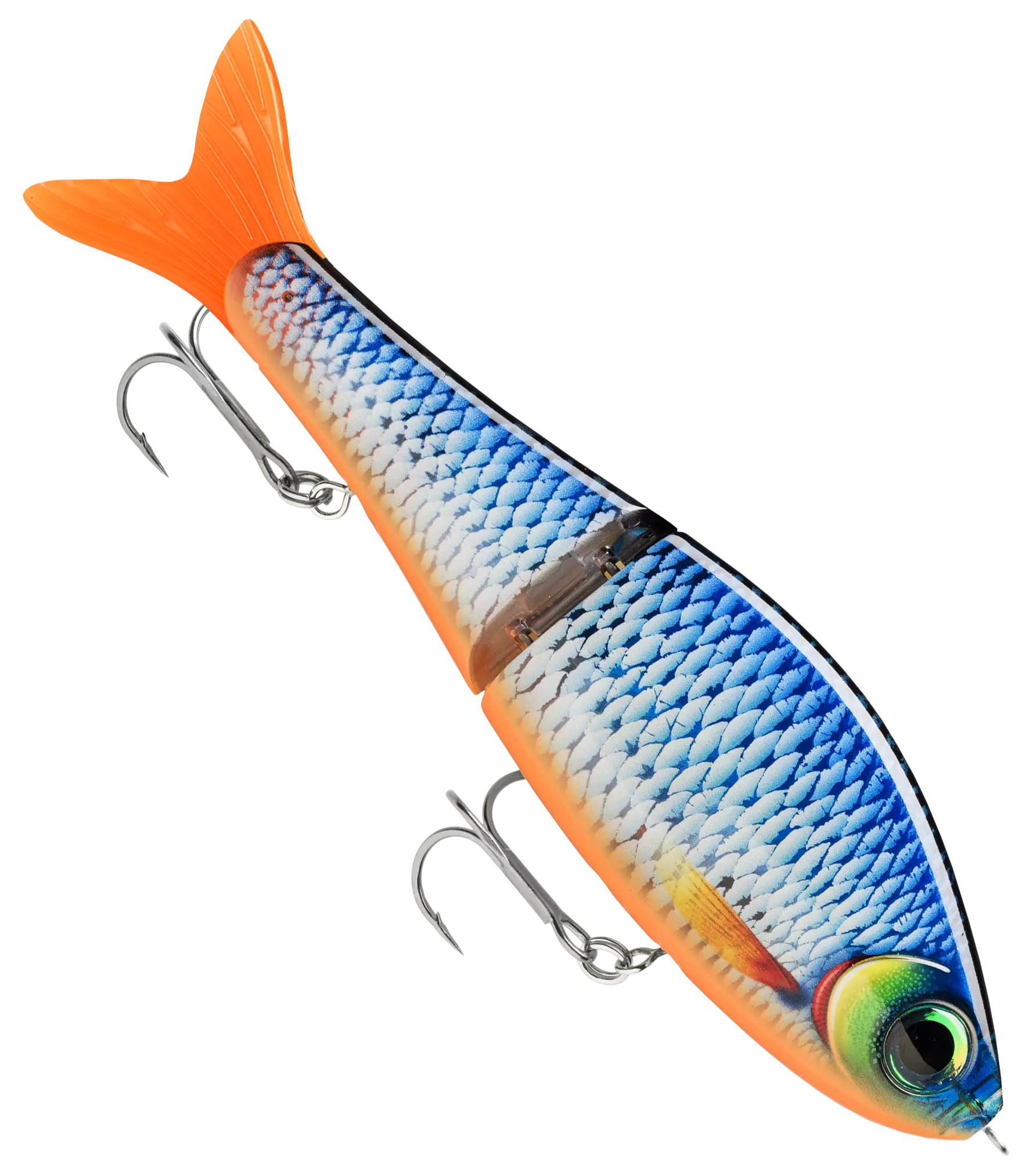 Den europeiske trenden innen gjeddefiske, swimbait, kombinerer en fantastisk finish med en rolig og avslappet svømmebevegelse som tiltrekker gjedder. Agnet inkluderer også en lett utskiftbar tungstenvekt. Pakken inneholder en utskiftbar hale som kan gi produktet et naturlig eller iøynefallende utseende, avhengig av vannfarge og lysforhold. Wobbleren har en langsom, side-til-side svømmebevegelse som tiltrekker gjedder ved jevn innsveiving.