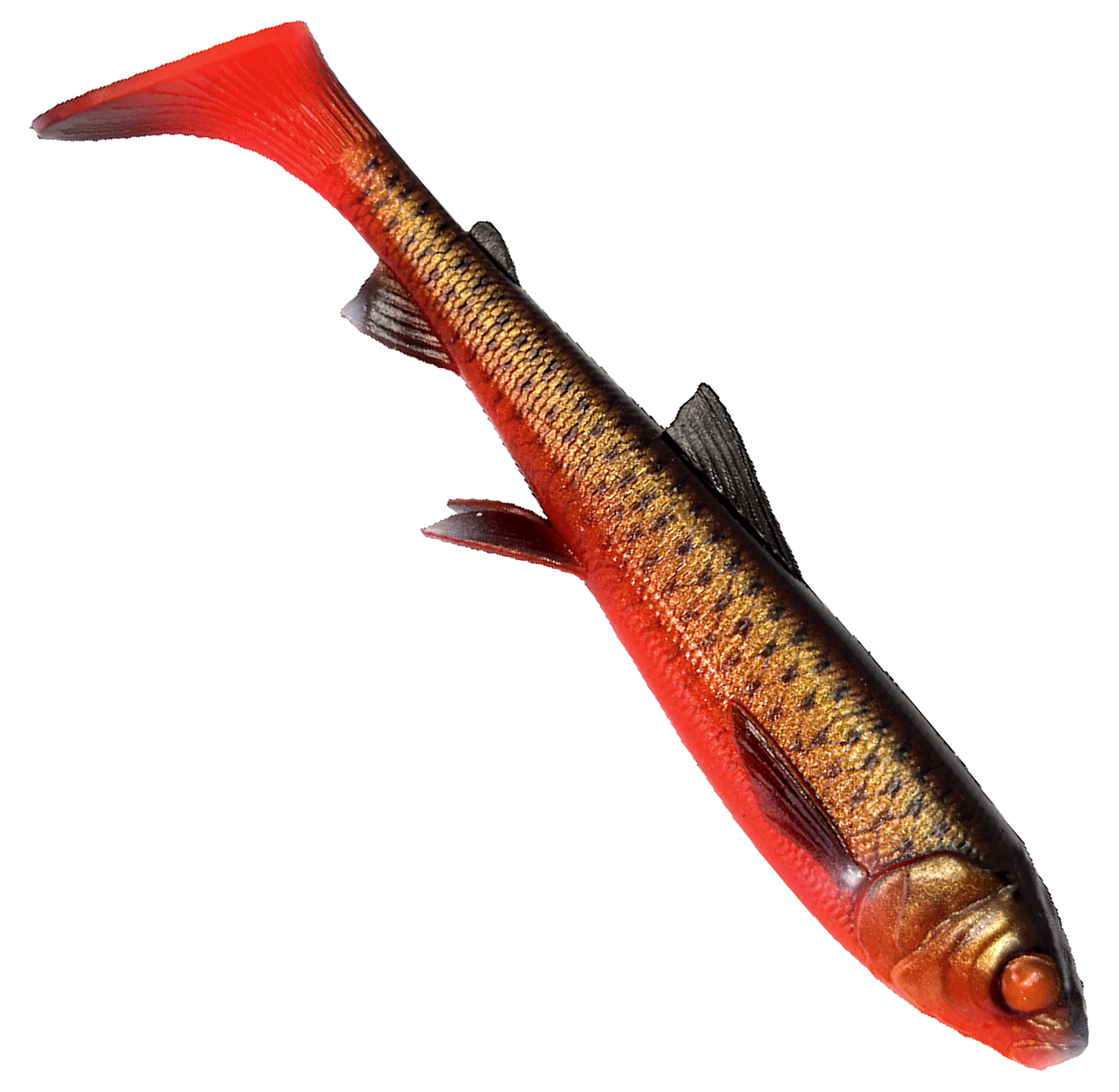 Savage Gear Whitefish er basert på en nøyaktig skanning av en ekte fisk, noe som gir denne shaden en utrolig detaljrikdom, både i utseende og funksjon. Whitefish sparker kraftig med sin store padlehale, og agnet begynner å svømme lett selv ved langsom innsveiving. Materialet er PVC, og fargene på disse shadene er utrolig fine og detaljerte.