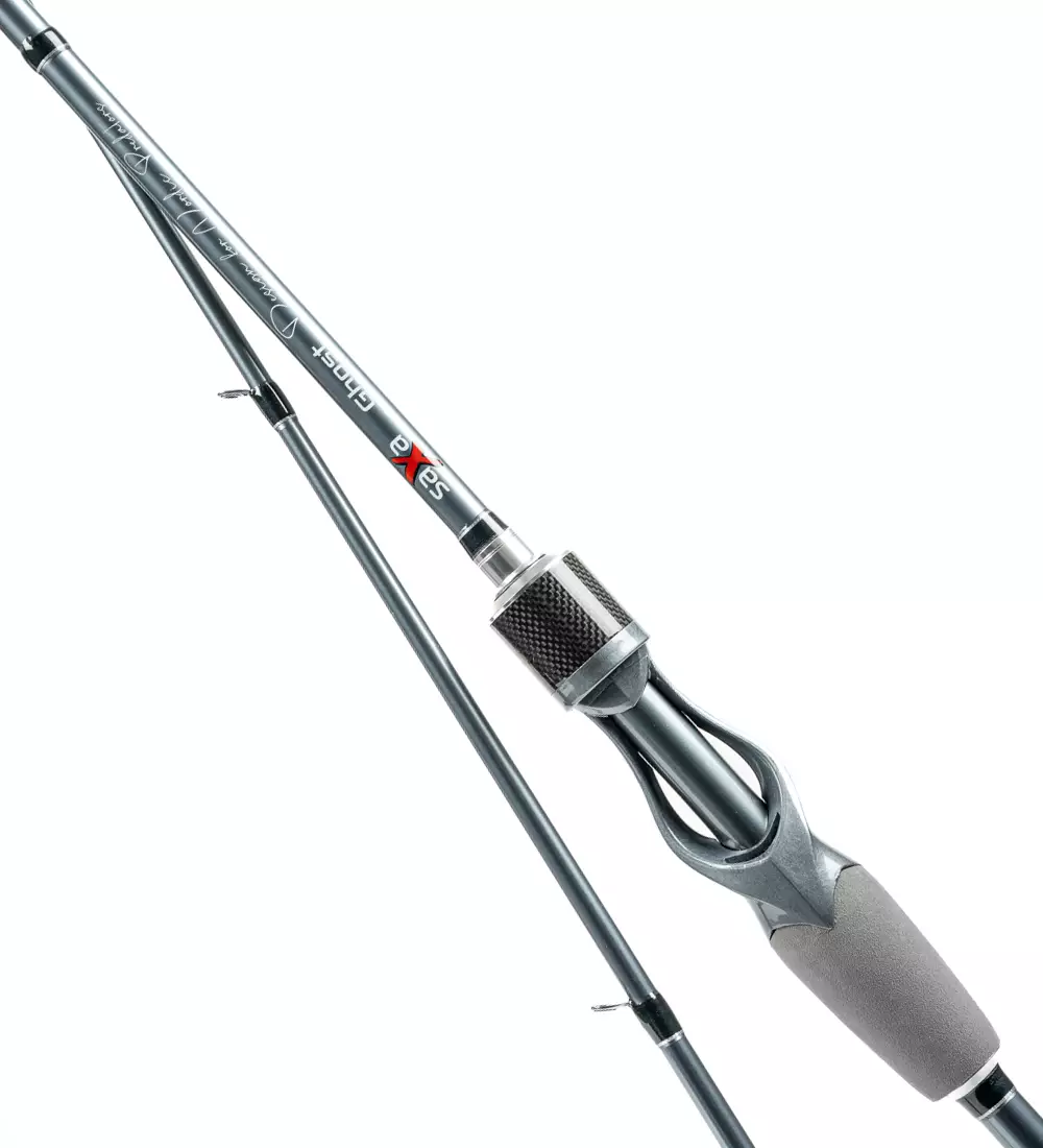 Saxa Ghost-stengene er laget av 30-tonns høykvalitets karbonfiber og har en veldig rask aksjon. Stengene er 2-delte og leveres med en mørkegrå neopren stangpose som gir god beskyttelse. Stangposen har en glidelås ved snelleområdet, slik at det også er mulig å transportere stangen i posen med snellen festet.