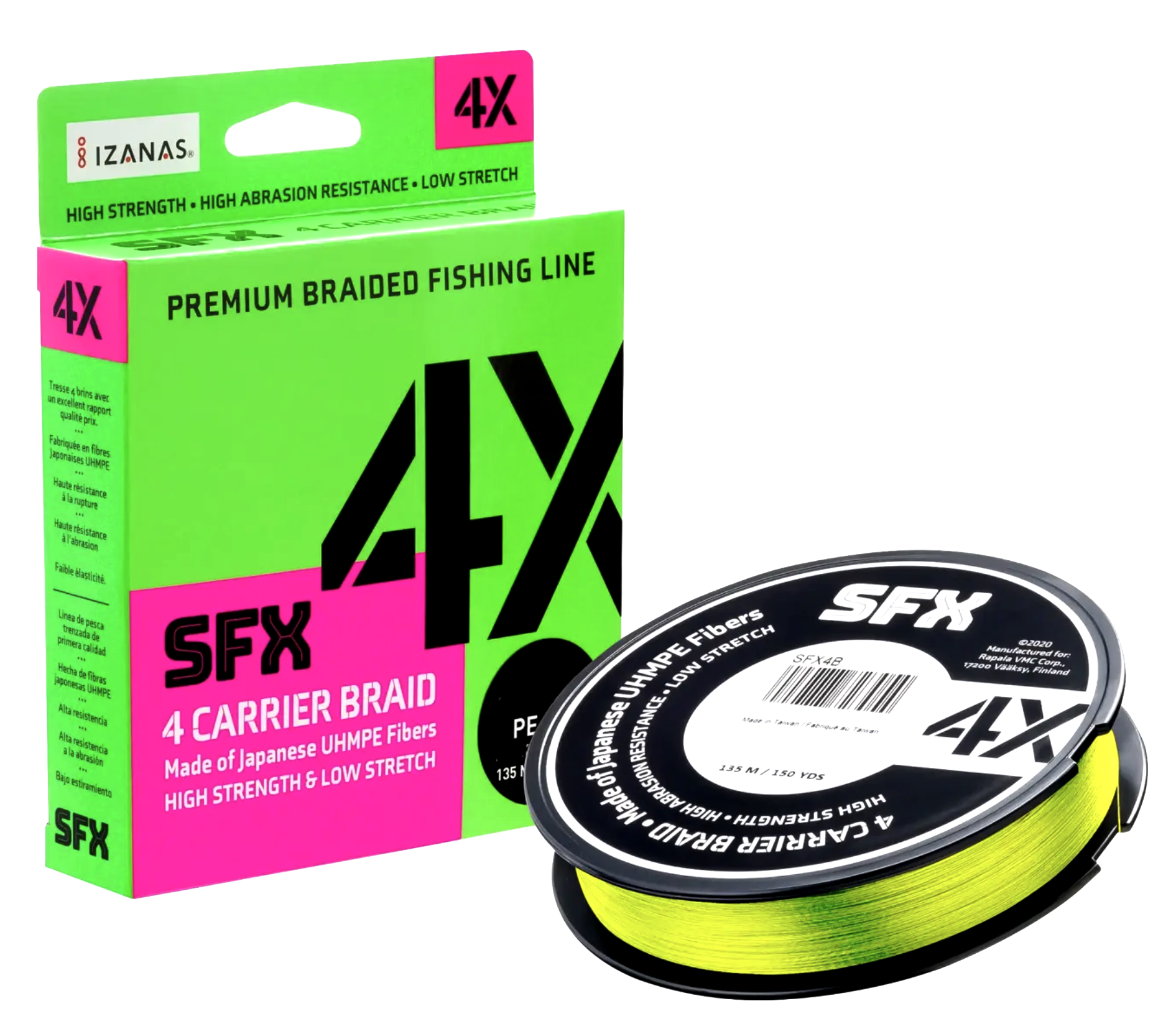 Sufix SFX 4 Carrier Braid 0,148 mm Yellow er en multifilamentline med en diameter på 0,148 mm og en bruddstyrke på 7,0 kg. Linen har en lengde på 135 meter. Den er firetrådet og laget av japansk UHMPE-fiber, noe som gjør den til et holdbart og pålitelig valg for fiske.