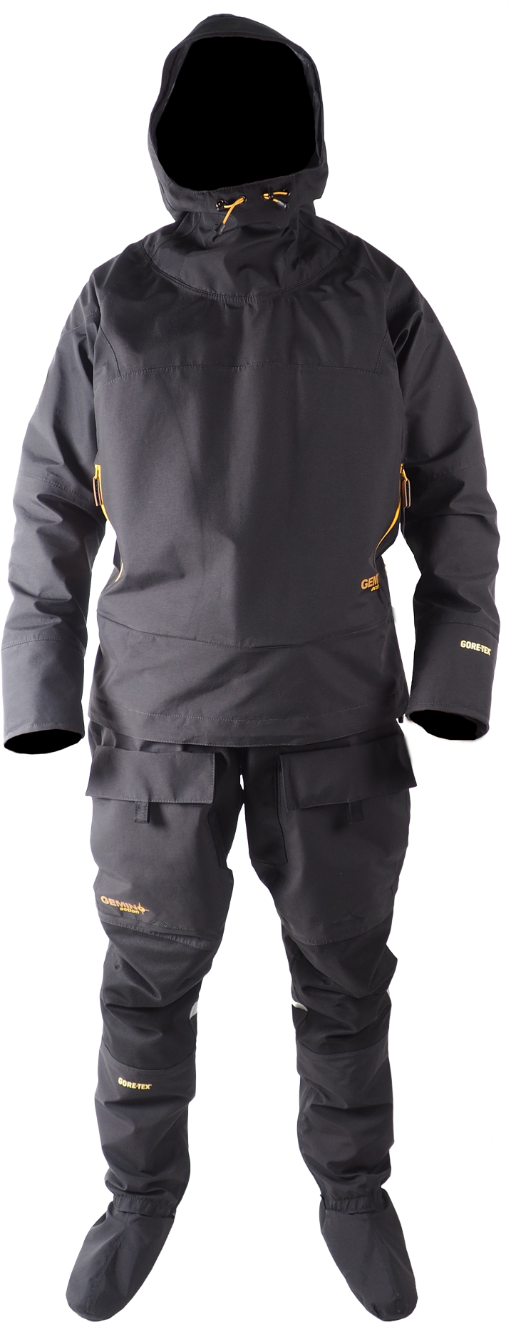 Ursuit Gemino Action er en todelt tørrdrakt med patentert YKK Zip-Lock glidelåsløsning, designet for allsidig bruk på vannet. Gore-Tex® Taslan-stoffet gjør drakten lett og slitesterk, og Cordura-forsterkninger på knær, albuer, skritt og sete beskytter mot slitasje.