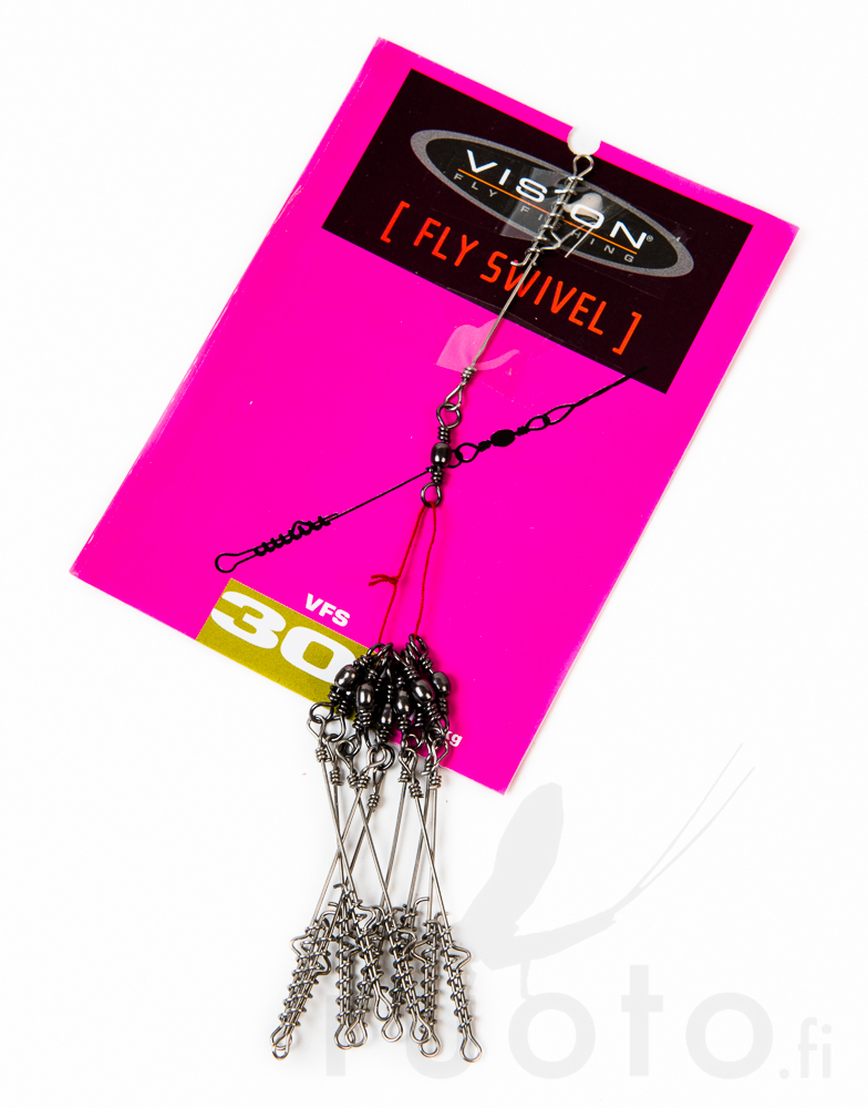 Vision Fly Swivel - Hvis du noen gang har fisket gjedde med flue, har du sikkert lurt på hva som er den enkleste måten å feste fluen til en wirefortom. Dette er et enkelt og holdbart alternativ. Fest Fly Swivel-låsen til wiren din, og du kan raskt bytte flue uten å måtte kutte wiren hver gang. Låsen er lett nok til at den ikke forstyrrer fluens dykk, og tønnen bak låsen forhindrer at snøret tvinner seg når du kaster store, fuglestore gjeddefluer.