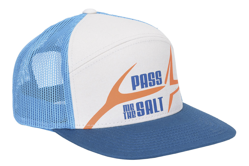 Vision Pass Me The Salt Cap er en høyprofil caps laget av en blanding av bomull og polyester. Capsen har et elastisk nettingpanel bak som forbedrer pusteevnen og komforten. Foran har den "Pass Me The Salt"-logotrykk som gir capsen et personlig preg. Capsen er justerbar, så den passer de fleste hodeformer. Produktets farge er blå.
