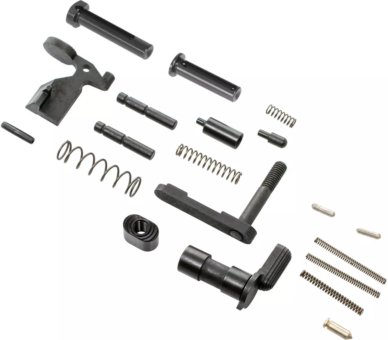 Det spesielle med denne pakken er at den er satt sammen med bygging i tankene: den inkluderer akkurat de fjærene, pinnene og detentene som ofte mangler eller slites ut i bruk. Samtidig gir den kjøperen friheten til å skaffe ønsket trigger-mekanisme, trigger guard-løsning og pistolgrep separat. Dette muliggjør fleksibel tilpasning og holder vedlikehold og bygging planlagt.