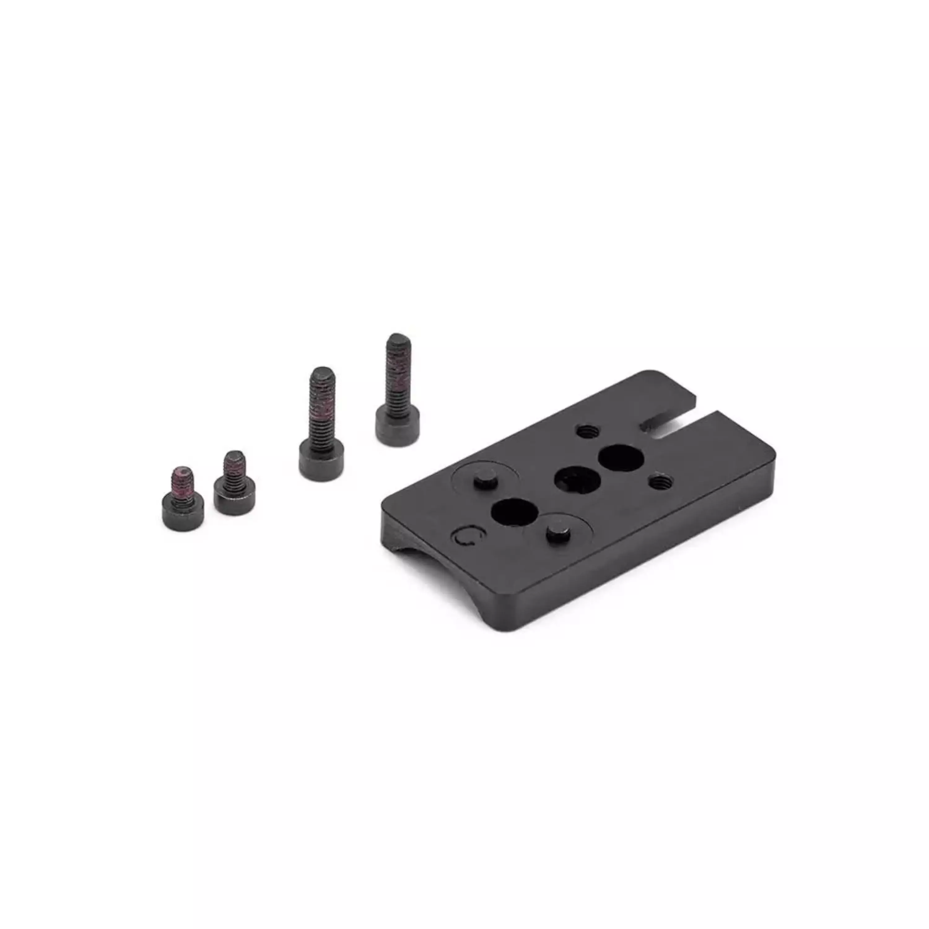 Settet er designet for standardbasen til RDO-sleiden, slik at installasjonen kan gjøres uten ekstra adaptere. C-MORE-kompatibel base gir en presis tilkobling til siktet, og leveringsinnholdet inkluderer monteringsskruer tilpasset platen og sleiden.
