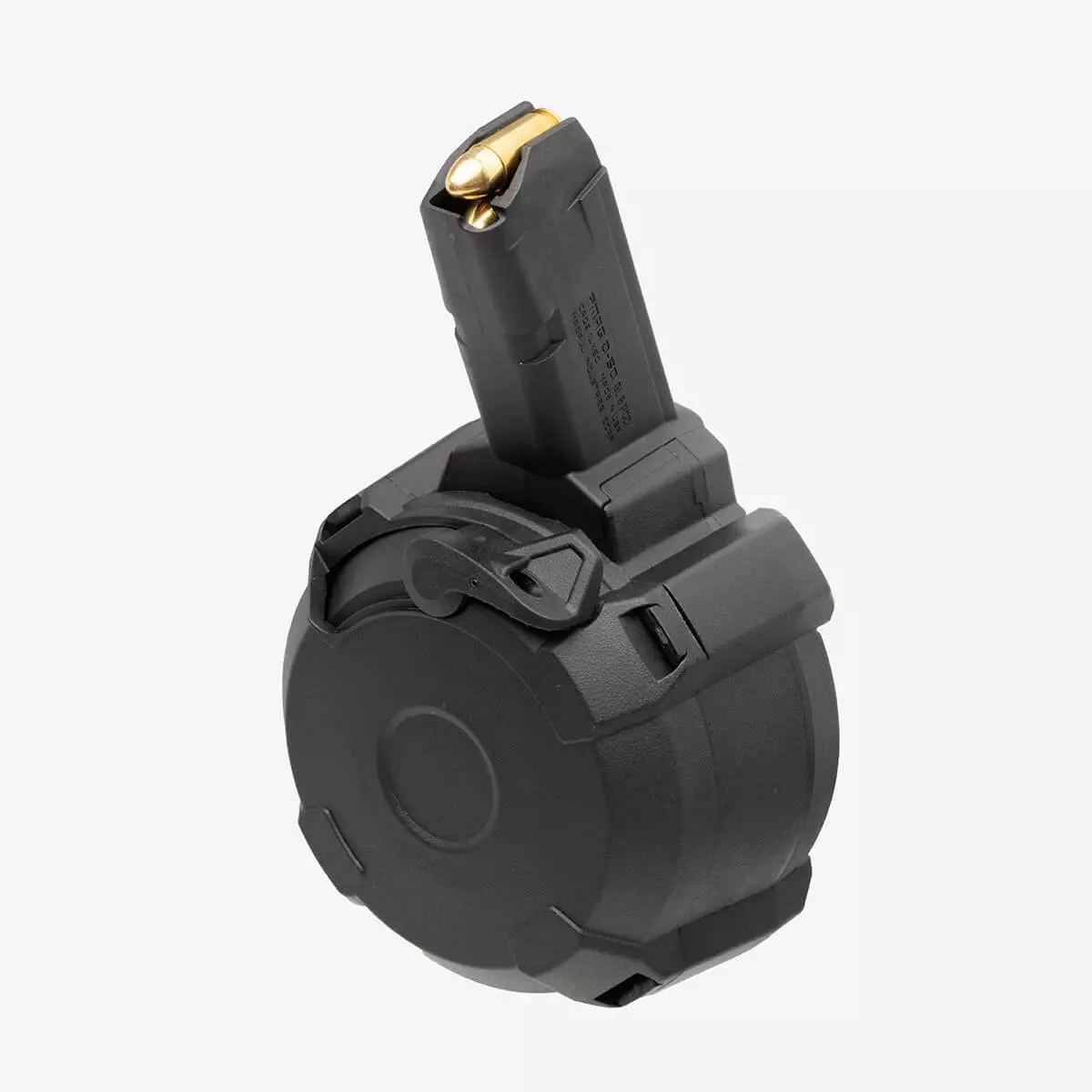 Magpul PMAG D-50 GL9 - PCC er et 9x19 mm Parabellum kaliber 50-skudds trommelmagasin for store pistolplattformer og PCC-våpen som mates fra dobbeltstabel 9 mm GLOCK-mønster magasiner; ikke kompatibel med noen GLOCK-håndpistoler. Trommeldesignet gir høy kapasitet med kontrollert høyde, noe som gjør magasinet enkelt å lagre. Ladingen forenkles av en skralleladehendel som fjerner fjærspenningen under lading, og det er enkelt å følge med på antall skudd takket være bakvinduet, den høy-synlige følgeren og kapasitetshjulet.