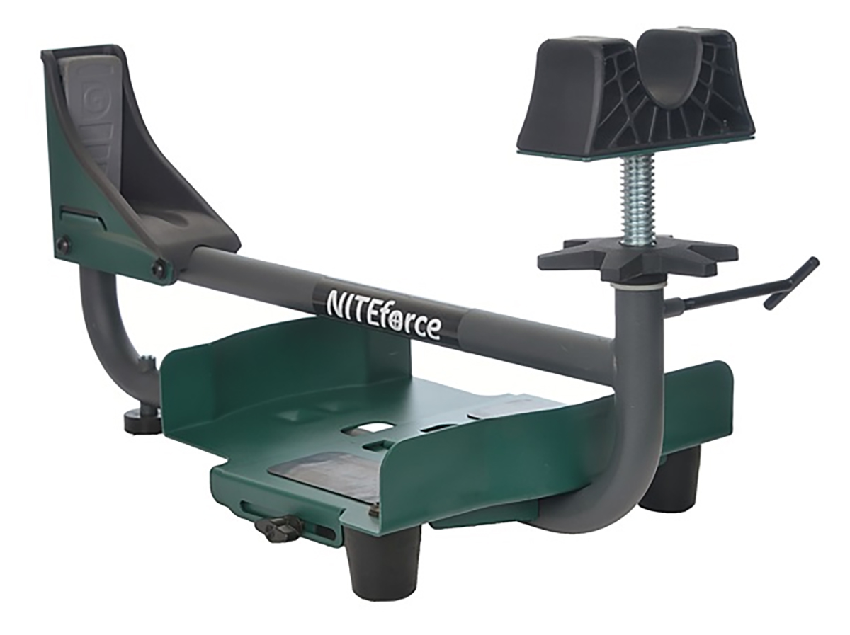 NITEforce Heavy Metal skytestøtte støtter våpenet både foran og bak samtidig. NITEforce Heavy Metal skytestøtte absorberer over 90% av all rekyl fra avfyring med forskjellige kalibrede våpen. Den fungerer også svært godt med våpen med stor kaliber, og vekter kan legges til etter behov.