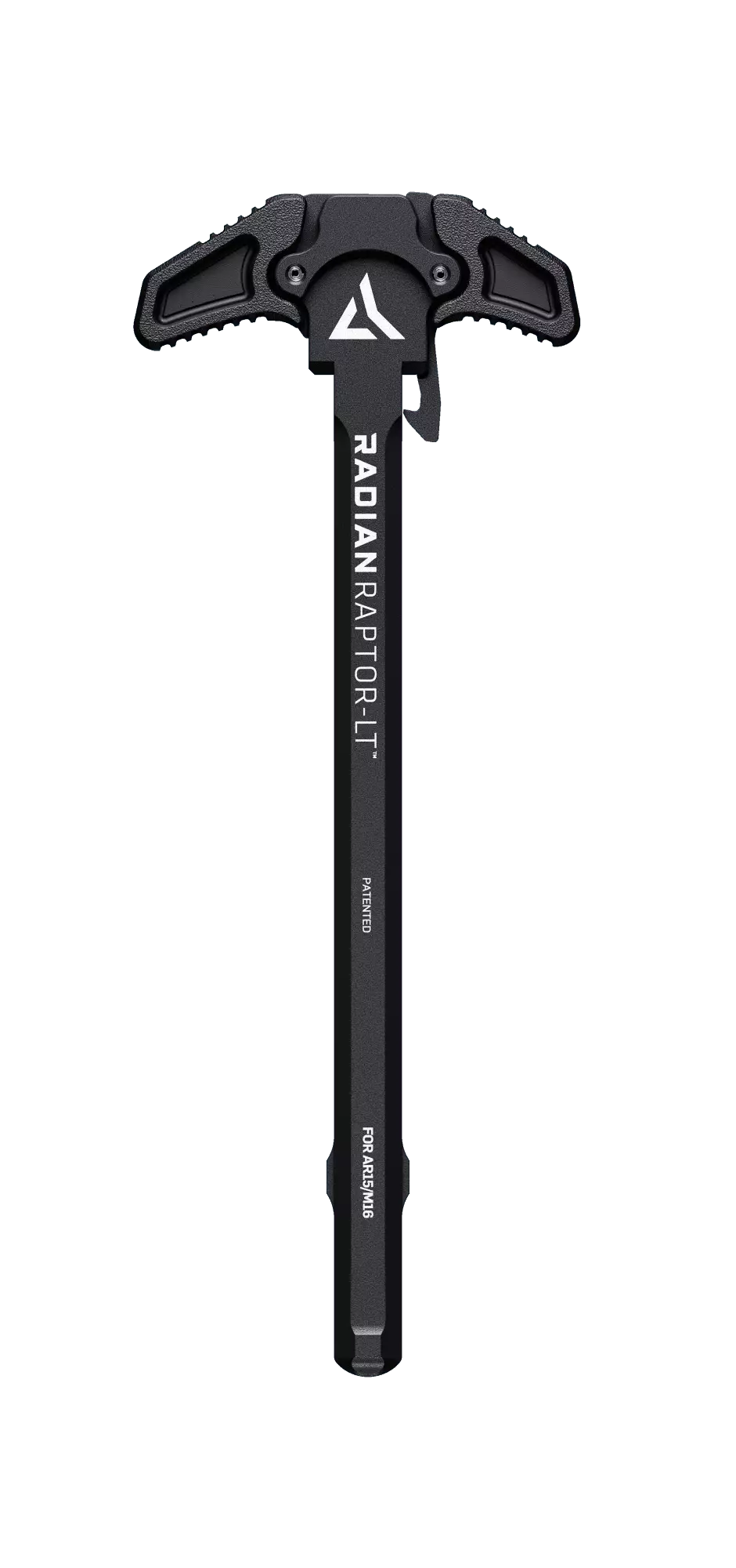Radian Raptor LT ChargingHandle AR15 Blk er et tosidig ambidextrous ladehåndtak (tosidig ladehåndtak) for AR15/M16-kompatible rifler; det er basert på Radians Raptor-LT-design, hvor håndtakene er maskinert av 7075-aluminium, MIL-SPEC Type III hardanodisert og overstøpt med glassfiberforsterket polymer for å oppnå maksimal kombinasjon. Tosidig funksjonalitet gir et sikkert grep fra begge sider, USA-produksjon sikrer jevn kvalitet, og begrenset livstidsgaranti kompletterer helheten. Tilgjengelig i svart, flat dark earth og grå, som er tilpasset Magpul-fargepaletten; denne modellen er den svarte AR15-versjonen.